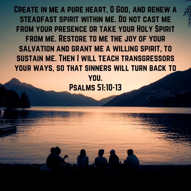 While I was super familiar with the first part I was struck by the last sentence. “Then I will teach transgressors you ways, so that sinners will turn back to you”.